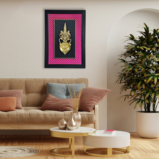 Brass Lord Lakshmi Hanging Diya Fiber Wall Frame