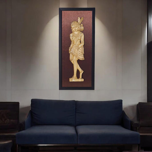 Handcrafted Wooden Tribal Musician Figurine in Fiber Frame