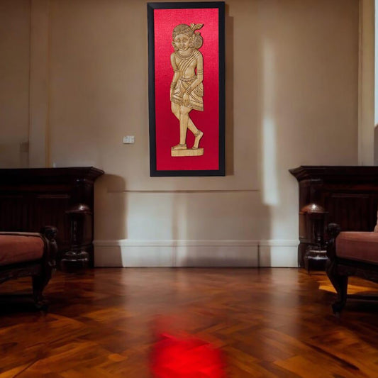 Handcrafted Wooden Female Tribal Figurine in Fiber Frame