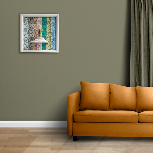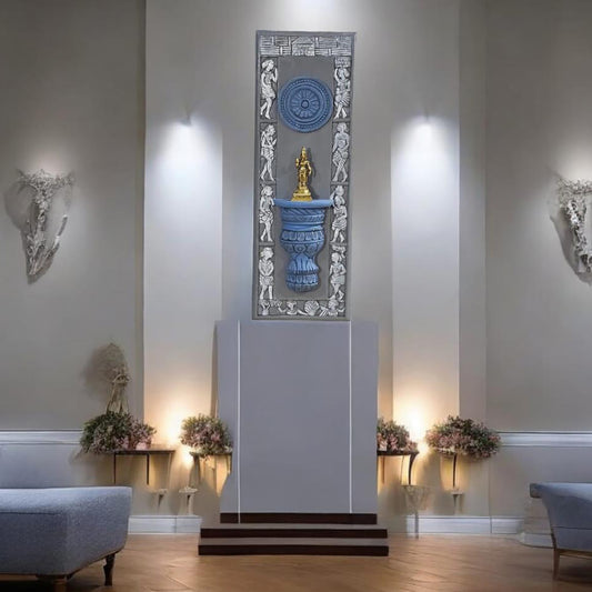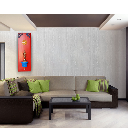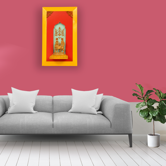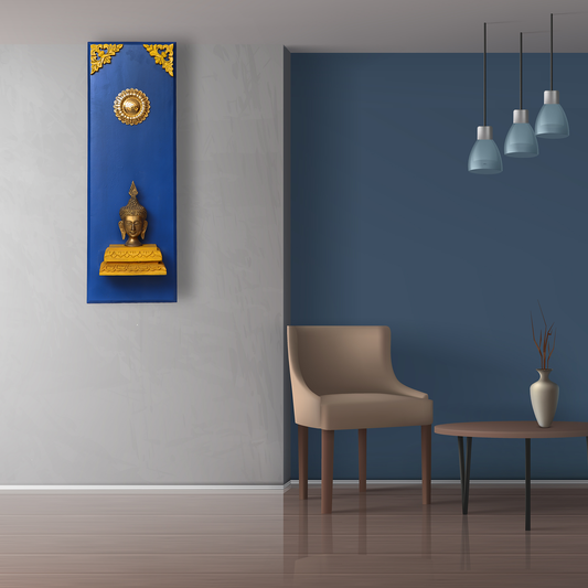 Brass Buddha on a Wooden Stand Wall Frame