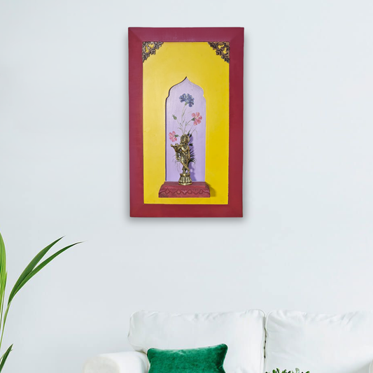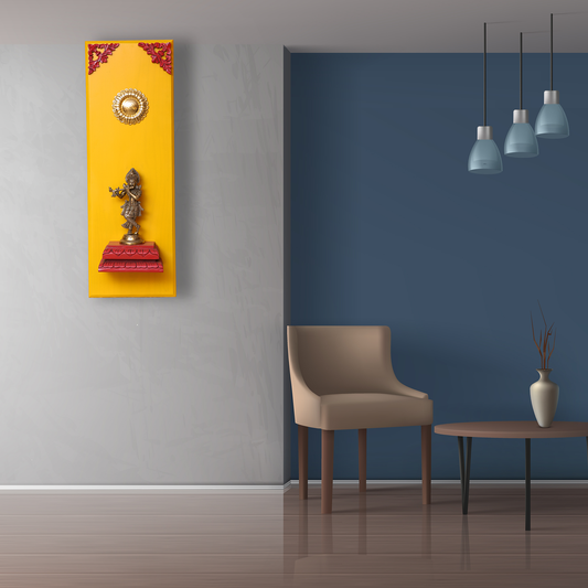 Brass Lord Krishna on a Wooden Stand Wall Frame