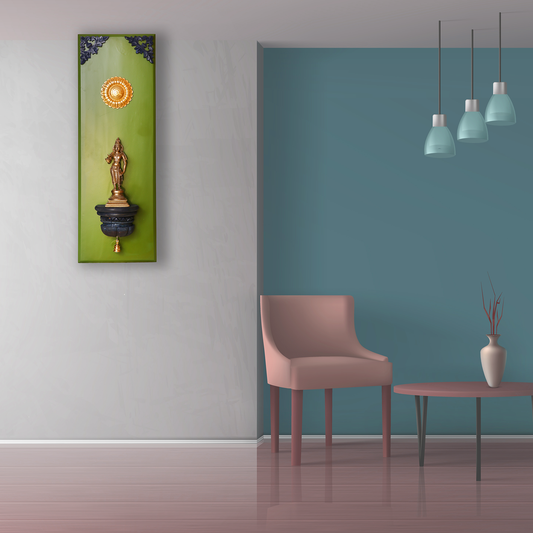 Brass Goddess Idol on Wooden Stand Wall Frame
