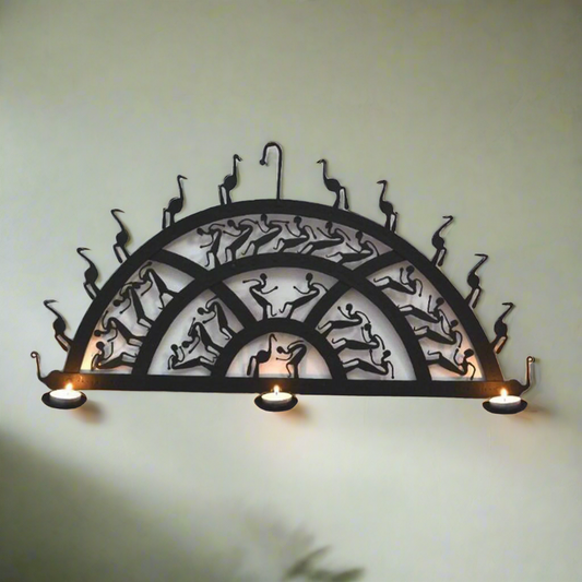 Wrought Iron Tribal Tea Light Holder Wall Hanging: Fusion of Artistry and Functionality