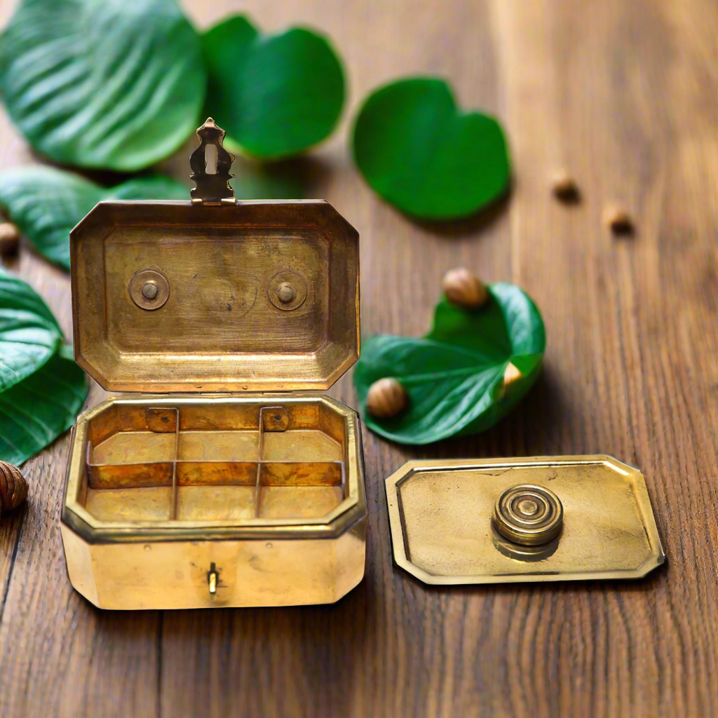 Experience the beauty and elegance of Indian culture with our Antique Brass Betel Nut Paan Daan Box, and add a touch of tradition to your home.