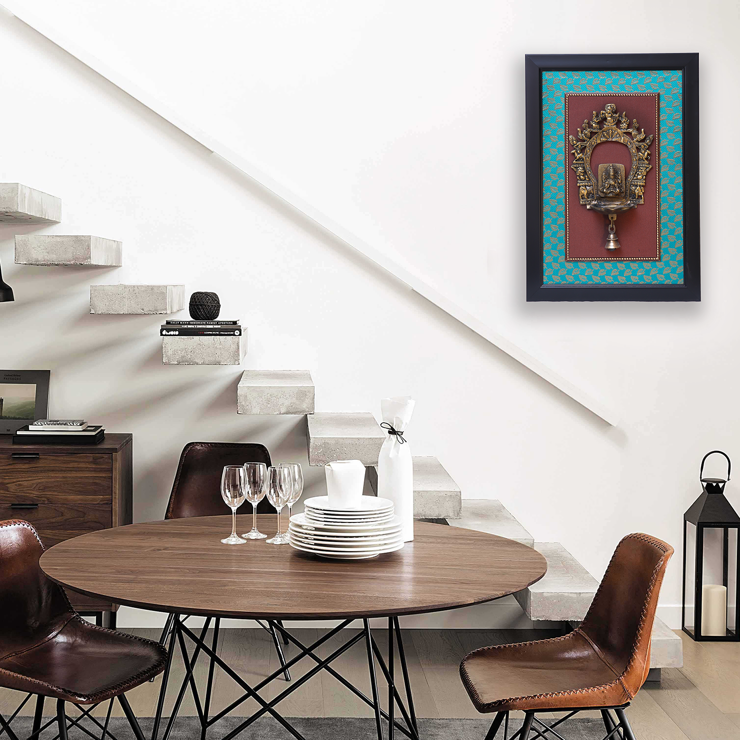 Elevate your home décor with this exquisite Brass Lord Lakshmi Hanging Diya encased in a premium fiber wall frame. Featuring the divine presence of Goddess Lakshmi and a beautifully crafted hanging diya, this masterpiece blends tradition with contemporary design. The elegant fiber frame enhances the brass artifact, making it a perfect addition to your pooja room or living space.
