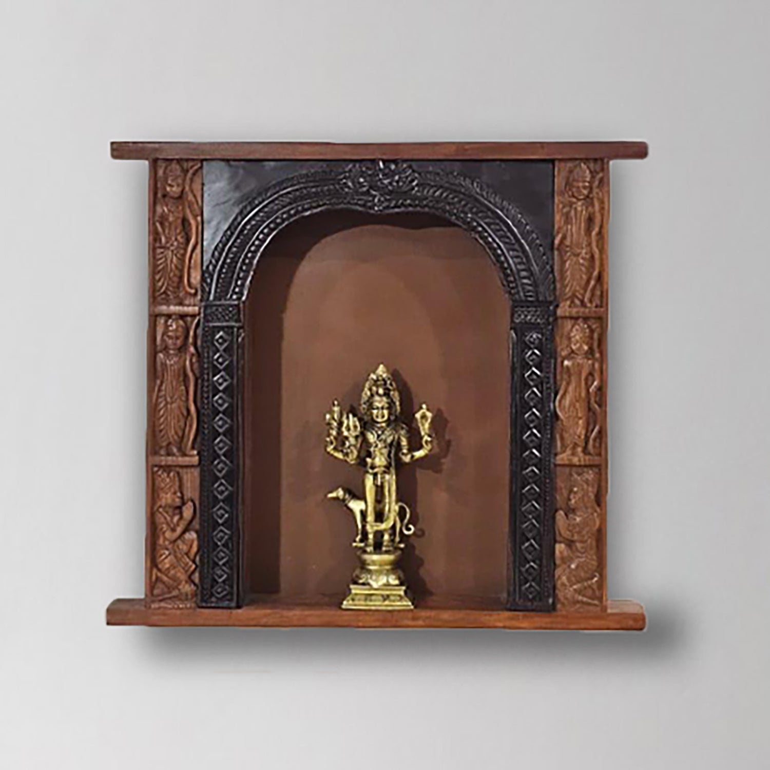 Exquisite Wooden Frame with Brass Bhairava Figurine